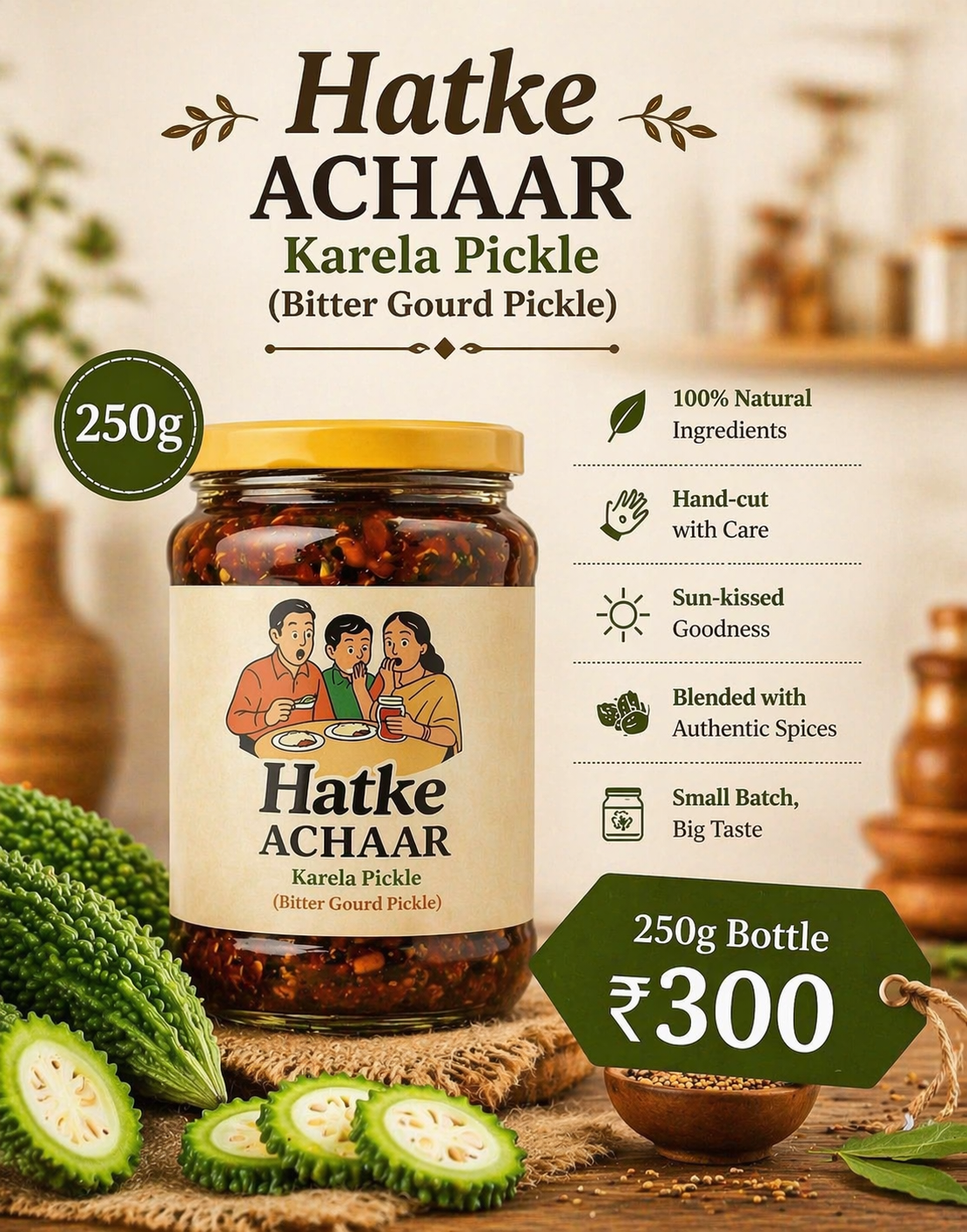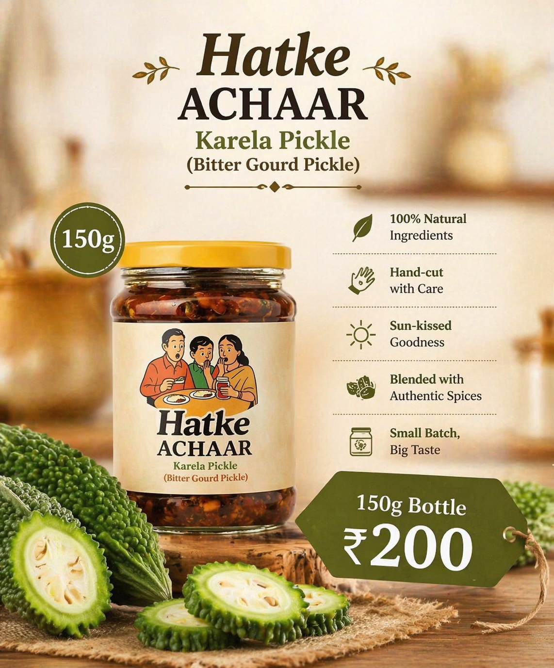 HATKE ACHAAR – Sun-Dried, Slow-Aged Karela Pickle | Pure & Natural